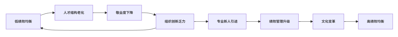 绩效均衡理论认为,企业组织结构与员工能力之间存在一种动态平衡,即低绩效均衡企业虽员工流动性低,但整体业绩偏弱、难以突破行业平均水平,此类企业往往依赖老员工惯性经营,致使创新能力有限、管理成本高企、组织活力缺失;高绩效均衡则要求企业具备持续创新、人才结构优化和团队协作高效的能力,这也是推动企业迈向行业领先的关键。