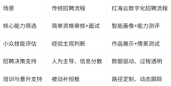 在红海云的助力下,央国企将持续提升招聘与管理的专业化、数字化水平,让小众技能型人才真正成为推动组织创新和高质量发展的新引擎。