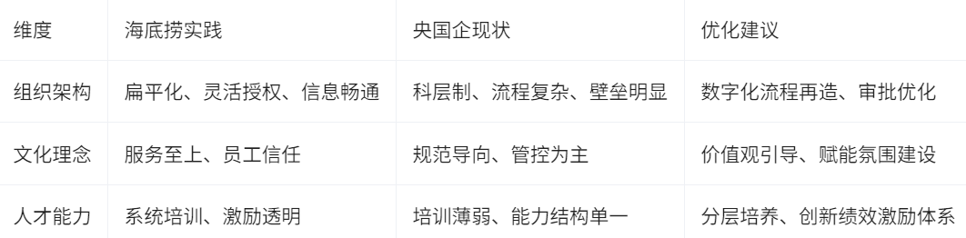 在组织架构逐步优化的基础上,企业文化的适配成为央国企管理创新能否真正落地的又一重要支点——文化不仅仅体现在理念宣导上,更深刻地影响着员工的价值观和行为习惯,而与强调灵活、信任和客户至上的互联网企业不同,央国企往往延续着规范严谨、层级分明的文化传统,这种文化有助于确保组织的稳定运行和合规性,但在推动创新、赋权和服务导向等机制时,却可能会出现理念上的“断层”。