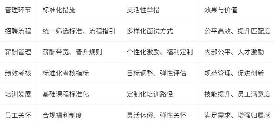 然而,灵活管理却也带来了管理成本和风险的上升——授权失控、监督不力可能导致不公平感和组织混乱,并且在缺乏统一标准的情况下,员工素质参差不齐也将使决策失误和运营风险增加,例如销售人员为完成业绩随意承诺客户,可能损害企业品牌和长期利益。对此,灵活性要求管理者具备高度的专业判断和公正性,否则易陷入“会哭的孩子有奶吃”的管理误区,因此对于央国企而言,平衡灵活性与标准化不仅是技术问题,更是管理智慧的体现。