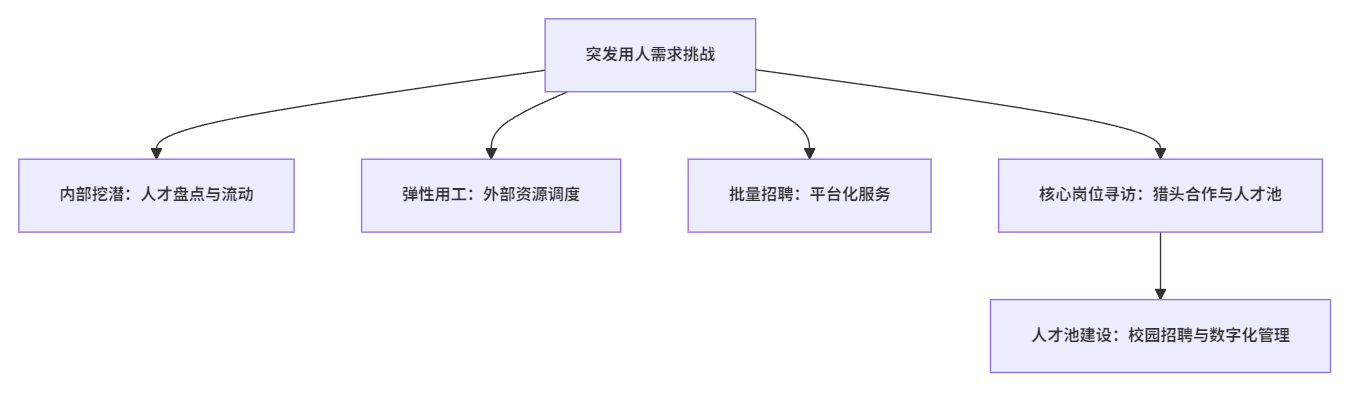 面对突发的用人需求,央国企应首先关注内部人力资源的深度盘活——企业内部人才市场的建设和跨部门流动机制是提升组织韧性的重要手段,其相比外部招聘具有流程短、文化磨合快、成本低等优势,更能保障项目的快速启动和业务连续性。