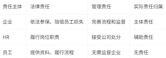 具体到执行层面,HR作为社保办理的直接责任人,理应具备高度的业务敏感性和严谨的工作态度。因疏忽导致员工漏买社保,HR需承担职业责任,并接受内部规章制度下的相应处分,如警告、降级或绩效扣分,但值得注意的是,HR个体责任不能替代公司对员工的法定赔偿义务,公司内部处理仅为管理改进,不能转嫁法律责任,员工方面若已履行入职流程并按要求提供资料,则不应承担任何责任,因此员工有权要求企业补缴社保并赔偿由此产生的实际损失,这也是维护和谐劳动关系的基础。