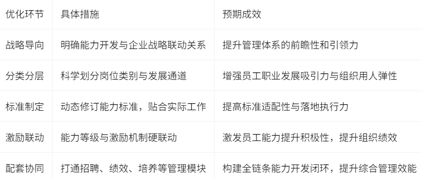 与此同时,能力素质模型更多着眼于员工潜在能力和长期成长,而岗位实际需求却更加关注当下的业务能力和成果转化。企业在操作过程中常常发现,高素质人才的选拔和培养并未带来预期的业绩增长,究其原因不仅在于模型本身的“静态化”,还在于缺乏与绩效管理、职业发展、岗位配置等人力资源模块的有效对接。这种割裂导致能力模型成为一座“管理孤岛”,难以真正赋能组织发展。并且,不少央国企存在“照搬照抄”标杆企业的倾向,忽略了自身行业特性和业务实际,结果导致标准难以落地或者激励作用不明显,甚至有一部分企业在推行任职资格体系时过于强调过程合规而忽视了员工体验和实际业务效果,最终使体系流于形式、员工认同度和参与度低下。