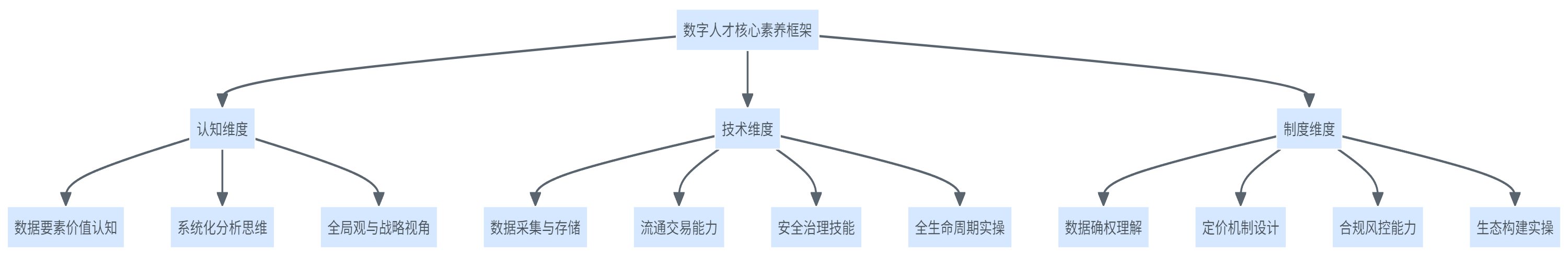 数字人才并非简单的"IT从业者"或"数据分析师",而是以数据资源为关键生产要素,兼具扎实数字思维与专业实操技能的核心骨干力量。他们能够依托技术赋能与创新突破,推动数据要素价值落地,支撑数字经济提质增效,而为实现人才供需的精准对接,企业必须科学搭建系统化的核心能力框架,从认知、技术、制度三个维度重塑人才培养标准。